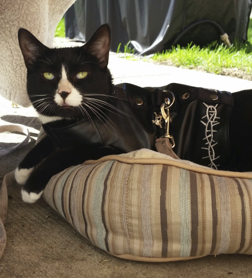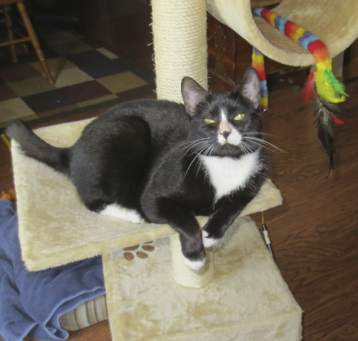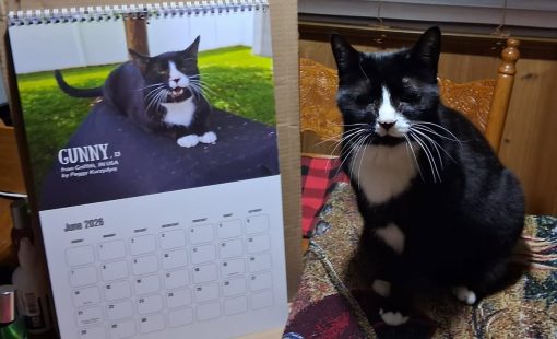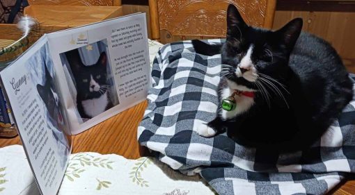 Peggy had been searching the shelter’s website, specifically looking for a tuxedo cat, when suddenly Gunny’s photo appeared.