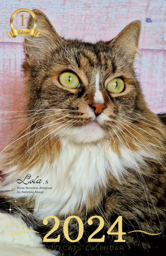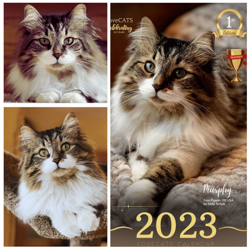 Murphy’s mom sent us about a dozen photos from every angle—and choosing just one was no easy task! But in the end, Murphy shined so brightly that he won the cover the 2023 LoveCATS’ International Calendar First edition 🌟🐾
